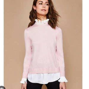 Master the layered-up look with Ted Baker's KAARINA. Featuring a mock shirt styled beneath a cashmere-blend overlay, this fine knit solves endless dressing dilemmas. Romantic elegance comes guaranteed thanks to a pretty pleated neckline.