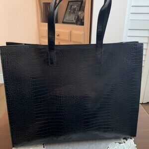 In great condition this Ted Baker tote bag holds so much. Black mock croc vegan leather (not real leather) Measures approx 17 1/2 x 14 x 5 1/2 inches. Strap drop 9 inches. Open to interior. One interior zip pocket.