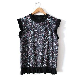 Ted Baker Letino Hazel-Print Contrast Top / Ted 3 / US 8 / Black Sleeveless