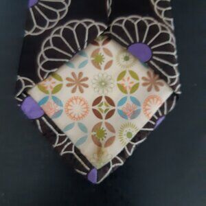 Ted Baker London 100% Silk Men's Tie -Black w/Mauve & Cream Geometric Pattern