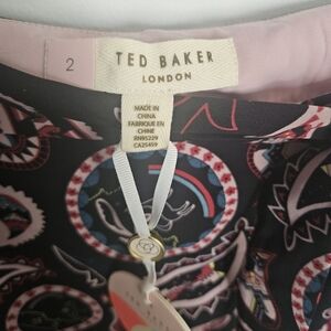 Ted Baker London Black and Pink Paisley Midi Skirt