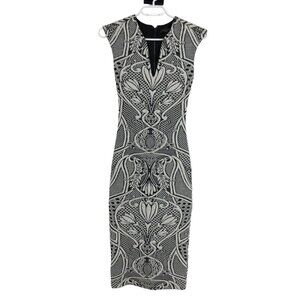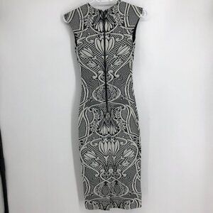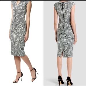 Ted Baker London Black and White Sancha Jacquard Fitted Pencil Midi Dress size 0