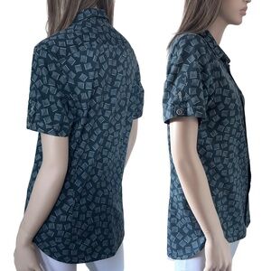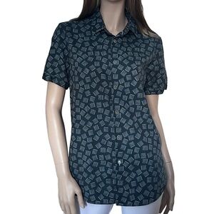 Ted Baker London Blouse Top Shirt Geometric Pattern Full Button Front Micro Dots