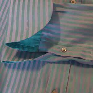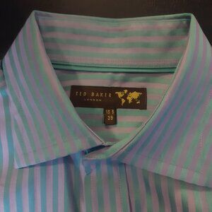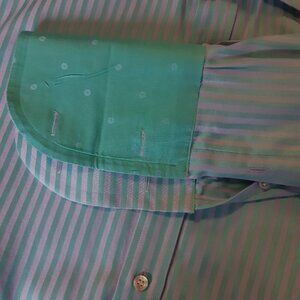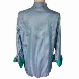 Ted Baker London French Cuff SZ15.5 Men's Striped Button Up Shirt Green & Mauve