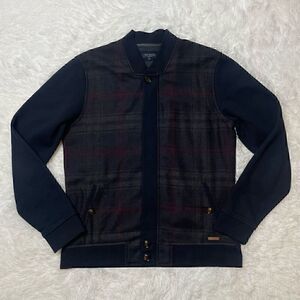 Ted Baker London Mens Small Wool Blend Plaid Full Zip Jacket Navy Blue Size 4