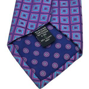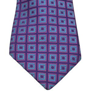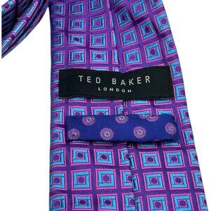 Ted Baker London Silk Tie Purple. Purple tie with pink and light blue squares. Materials: 100% Silk. Excellent condition. No known flaws. 3.25" wide.