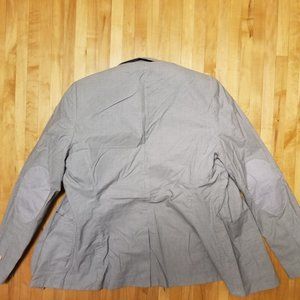 Unlined summer weight sports jacket, cotton, fine pin stripe over grey, elbow patches, Ted Baker detailing. Size 4.
