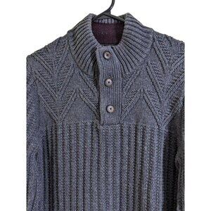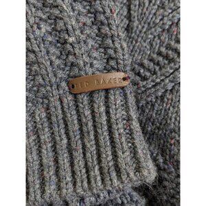 Ted Baker London Wool Blend Sweater Mens M Chunky Knit Gray Henley Mock Neck