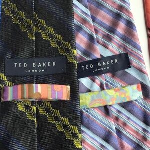 Ted baker Lot of 4 Classy Ties 100 % silk Great quality Nice pattern Lovely colours 3 1/2 to 3 3/4 in wide 57 -60 in long