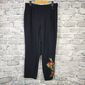 Ted Baker Madlyne Trousers Slim Fit Crop Track Stripe Embroidered Black Size 4