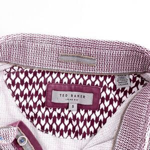 Ted Baker Mens Geometric Short Sleeve Pocket Cotton Polo Shirt Burgundy White Size XL (5)