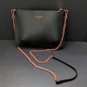 Ted Baker London black leather Nara crosshatch women's crossbody/clutch bag with rose gold chain.