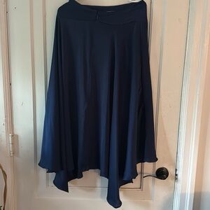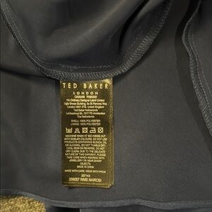 Chic navy satin dress by Ted Baker. Ideal for stylish events. Flowy with small slit for extra elegance.