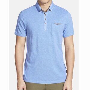 Ted Baker Ovaskep Piqué Polo Collar Slim Shirt Size 2XL Short Sleeve Blue Glee