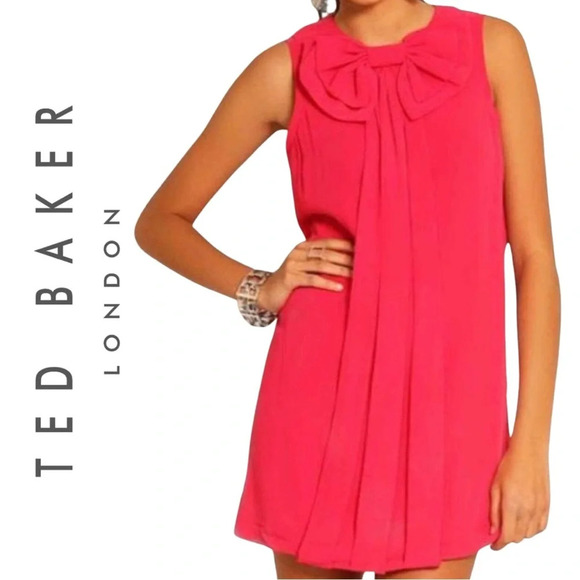 Ted Baker Pelayo Dress Hot Pink Bow and Pleat Detail Sleeveless Lined Size 4