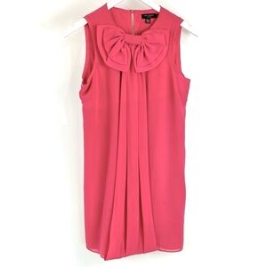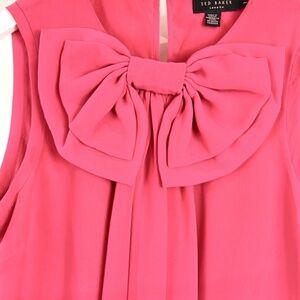 The sleeveless Pelayo mini shift dress from Ted Baker is made in a pink synthetic chiffon, and features a round neckline with a double-layered bow, front draping, a back keyhole and neck pleating, and is lined in a tonal chiffon.