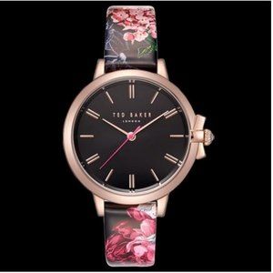 Ted Baker London Ruth Black Pink Floral Leather Strap Watch
