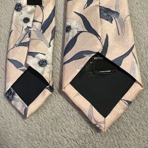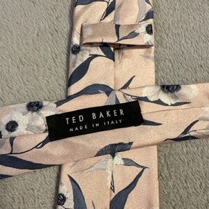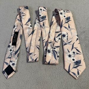 Ted Baker Set Tie Pocket Square Blue Floral Pattern Pink Made in Italy Silk New