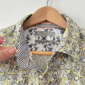 Ted Baker Short Sleeve Button Down Casual Dress shirt Tropical yellow white blk