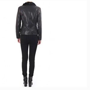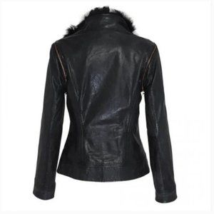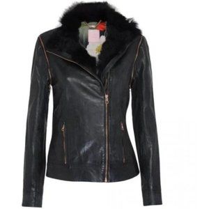 Ted Baker Tirely Furrly Detachable Sleeve Black Leather Jacket vest size 1 nwot