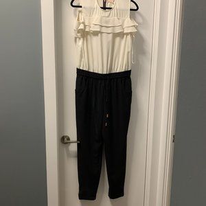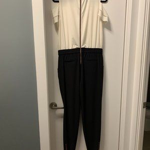 Ted baker Jumpsuit, worn once for a cruise. White and Black with rose gold accents. In perfect condition. Perfect for party season. Note Ted Baker size 4 is a US 10.