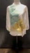 Chic blouse with bold floral print. Features green and gold flowers on white fabric. Ideal for stylish outings. Silk like fabric