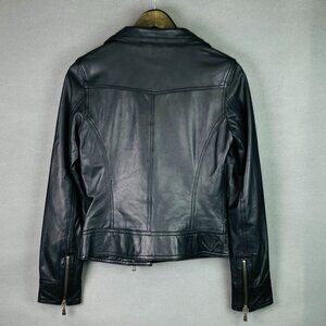 Ted Baker Women Black Biker Leather Jacket size 2, barely worn, like new