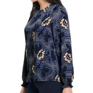 Ted Baker Women’s Blouse Satin Paisley Floral print Boho Key hole Navy Pink L