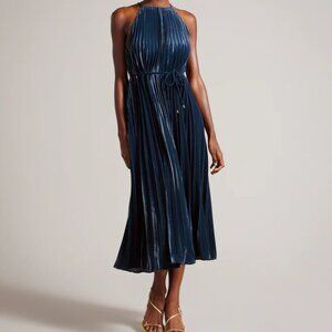 Ted Baker Women's Kassiah Pleated Halter Dress In Navy- Size 4