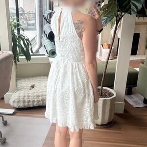 White high-neck sleeveless dress. Grogeous, textured floral pattern. Perfect condition.
