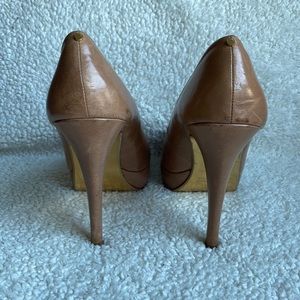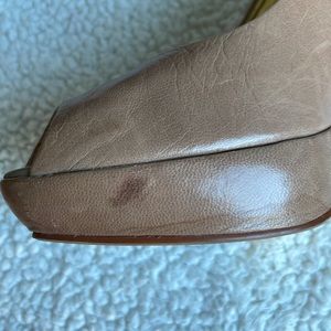 Classic nude peep toe pumps from Ted Baker. Super comfortable and go with everything. Some wear around toe upending and scuff marks as shown in photos. Heels are 5” and sole has 1” platform.