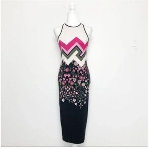 Ted Baker pink green black white Seenaa Floral Bodycon Dress size 2
