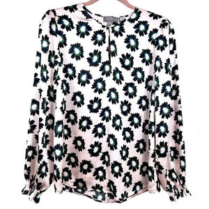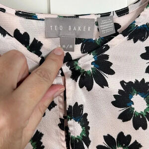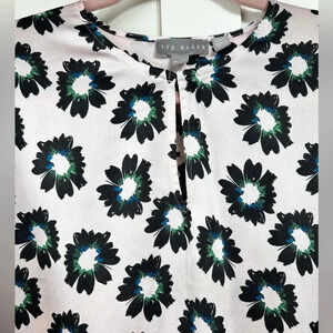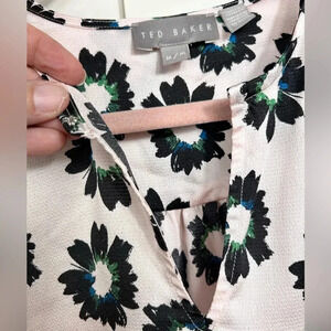 Ted Baker silky floral long sleeve blouse, M, feminine pretty Whimsy-Office
