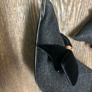 Ted Baker size 37 EUC/GUC “Bowtee” Lurex bow Black Ankle Boots with Kitten Heel