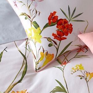 Cheerful flowers decorate the Ted Baker Renaissance Botanical Collection, using soft green vines that appear to climb the length of the bed for a never-ending garden escape in your bedroom. Printed on 100% cotton sateen, subtle pink and yellow florals are mixed with bolder reds for freshness. Coordinating shams are included in the set. 100% cotton. Machine wash