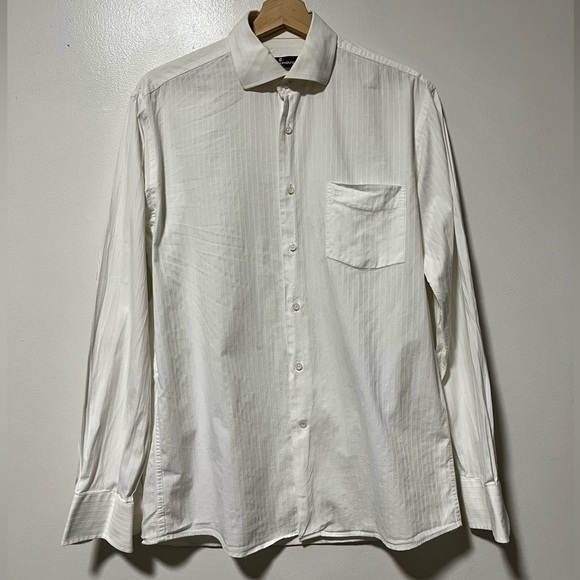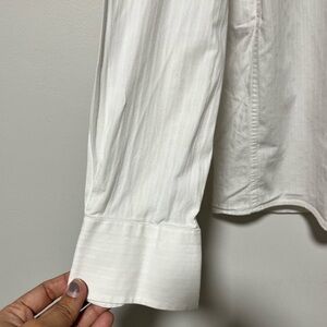 Ted Lapidus Paris White Striped Button-Up Shirt - Size Medium