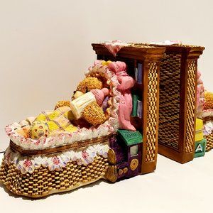 Teddy Bear Book Ends Resin Figurines New Old Stock Orig box Kid's Room Nursery
