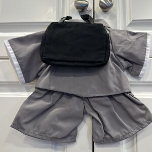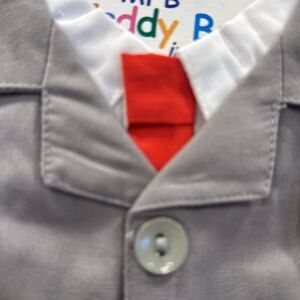 Teddy Bear Grey Suit with red tie & suit case. By MFB Teddy Bears Inc. Bear clothes. Bear outfit NWT