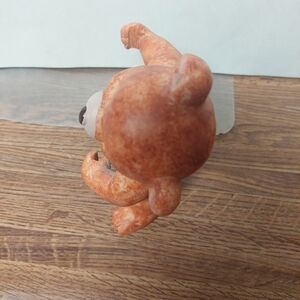Teddy Bear. Solid clay. May have held a sign. Adorable little thing. Approx 6.5" tall