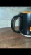 Black mug featuring a bear in an orange pumpkin costume holding a 'Boo!' sign. Perfect for Halloween.