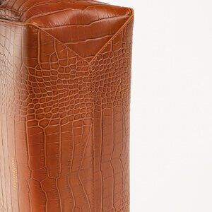 This Teddy Blake Gigi Croco Camel Brown Top Handle Leather Handbag features double top handles and gold-tone hardware. The large, rectangular shape provides ample space for all your essentials, while the zippered interior pocket keeps them organized and secure. Elevate your style with this luxurious and functional handbag. Also includes d-rings for an optional shoulder strap (strap not included).