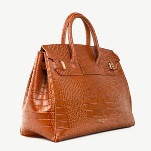 Teddy Blake Gigi Croco Camel Brown Top Handle Leather Handbag