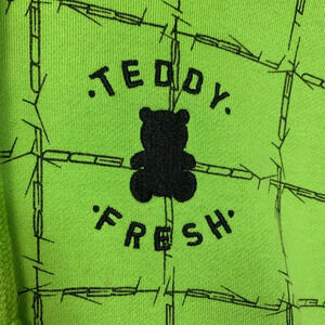 Stay on-trend with this Teddy Fresh Men's Green Barbed Wire Hoodie in size Large. Made of 100% cotton, this pullover hoodie features long sleeves, a hood with logo accents, and a kangaroo pocket for added convenience. Perfect for skater, punk, or street wear enthusiasts, this grunge-themed hoodie is machine washable for easy care. Whether for casual outings or everyday wear, this comfortable and stylish hoodie is sure to become a staple in your wardrobe.