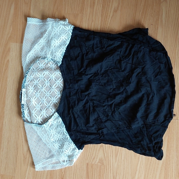 black short sleeved tee with lace shoulders and upper back