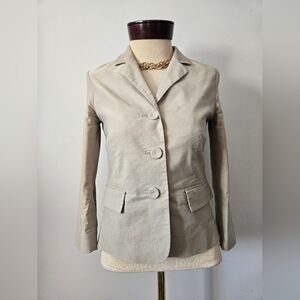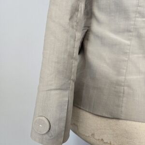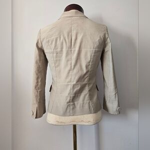 Adorable lightweight linen jacket with a three front button closure. Two front pockets still sewn from purchase.