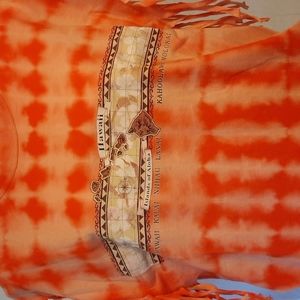 Hand tie-dyed, shredded short sleeves. Never worn. tie-dyed in Canada,bought in Hawaii.