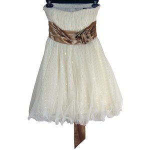 Teeze Me Strapless Glitter and Mesh Champagne 4 Layered Party Dress - Size 3