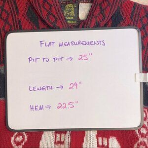 Good used condition. No holes or stains. Some pilling in high friction areas shown in pics. Full front zip. Material tag is tough to read but it’s 100% wool. Size L. Measurements in pic.