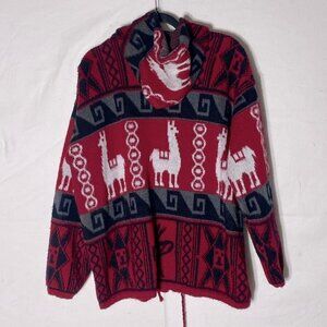 Tejidos Ruminahui Red Alpaca Zip Front Wool Sweater L