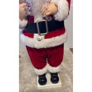 This animated Santa Claus figure stands cheerfully with a bright red light-up bell, bringing festive joy to any space. His fluffy white beard and classic red suit capture the holiday spirit perfectly. Ideal for adding a cheerful, holiday-themed decoration.